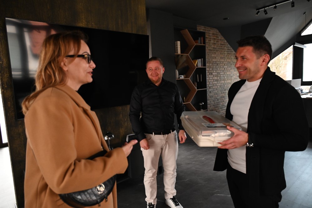 Przekazanie wylicytowanej szarlotki przez Burmistrz Miasta z okazji 34. Finału Wielkiej Orkiestry Świątecznej Pomocy