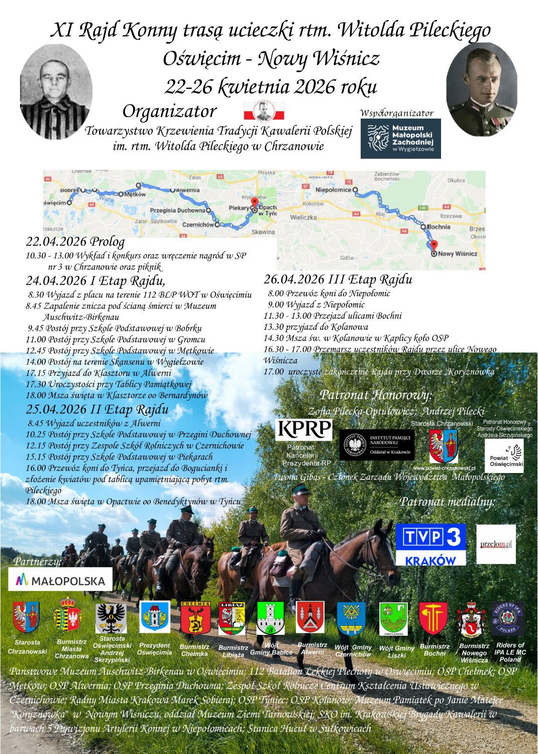 Organizatorem XI Rajdu Konnego trasą ucieczki rtm. Witolda Pileckiego z KL Auschwitz jest Towarzystwo Krzewienia Tradycji Kawalerii Polskiej im. rtm. Witolda Pileckiego w Chrzanowie. Miasto Bochnia jest jednym z partnerów tego wydarzenia.